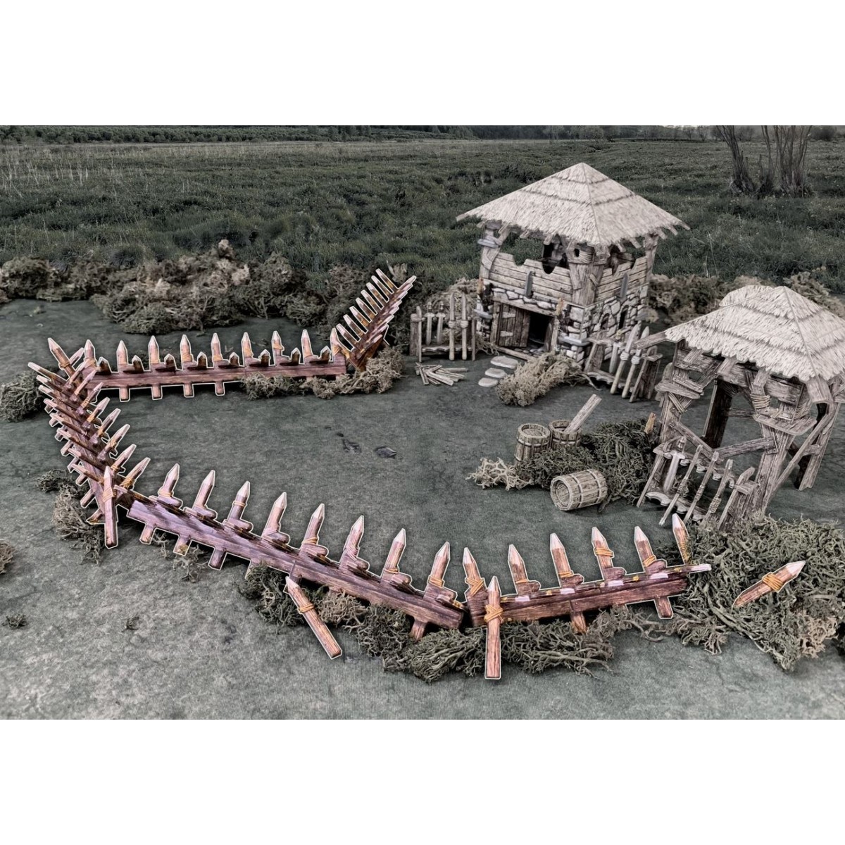 This pack upgrades your gaming table with a set of spiked wooden barricades, perfect for slowing an enemy’s approach. Each section is 6″ / 15cm long and the set includes four, plus a shorter section and some scatter. The pieces are compatible with the rest of the Battle Systems Fantasy range.