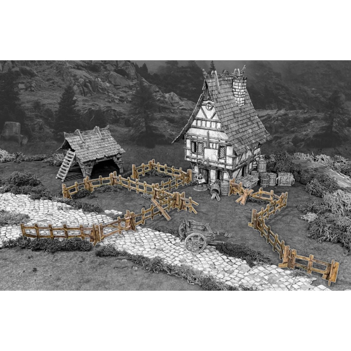 This pack upgrades your gaming table with a set of wooden fences. They will stretch almost 48″ / 120cm if placed in a line or can be used to surround or separate smaller areas. The set includes a gate and some damaged sections, and the pieces can also be used as railings around buildings. The pieces are compatible with the rest of the Battle Systems Fantasy range.