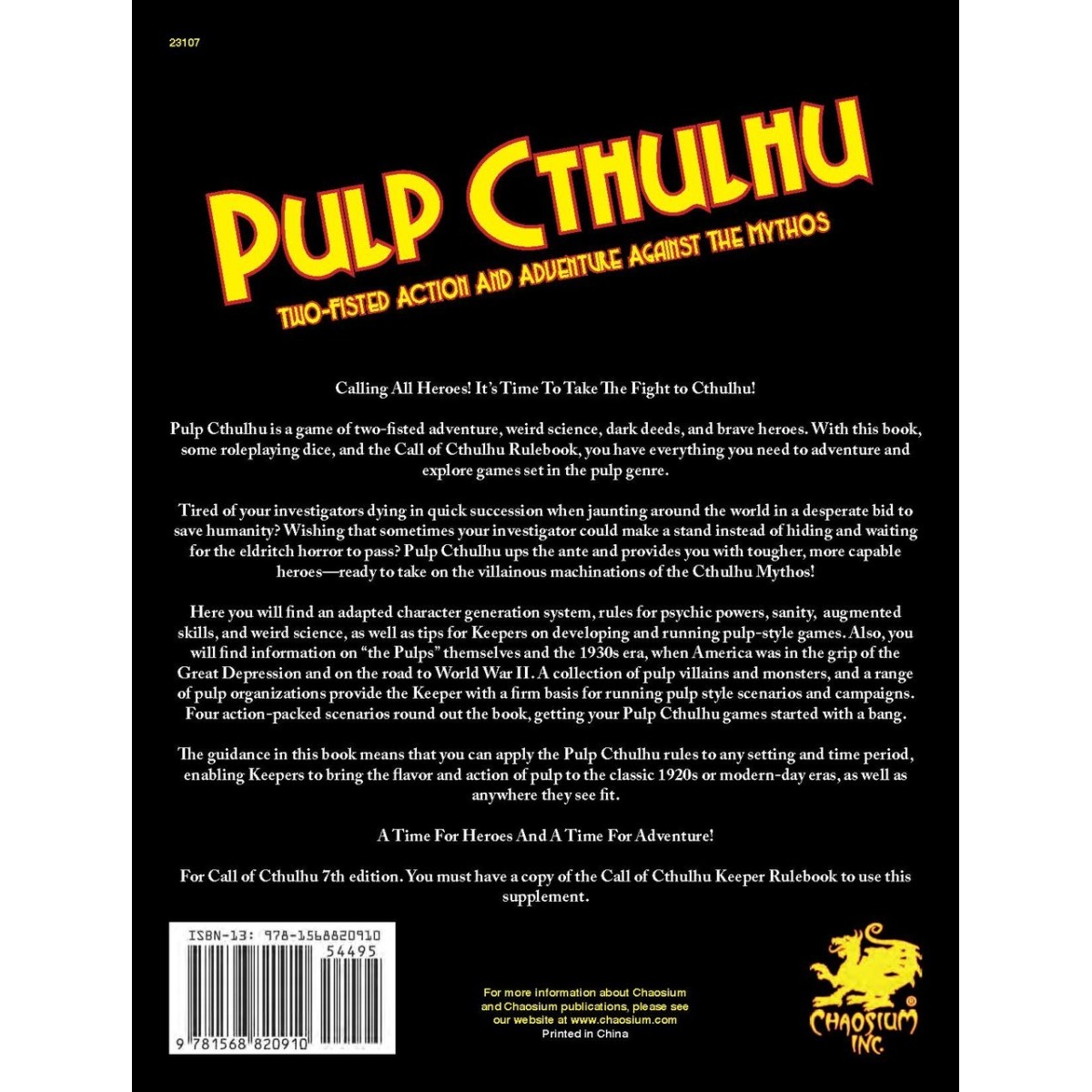 Pulp Cthulhu is a game of two-fisted adventure, weird science, dark deeds, and brave heroes. With this book, some roleplaying dice, and the Call of Cthulhu Rulebook, you have everything you need to adventure and explore games set in the pulp genre.