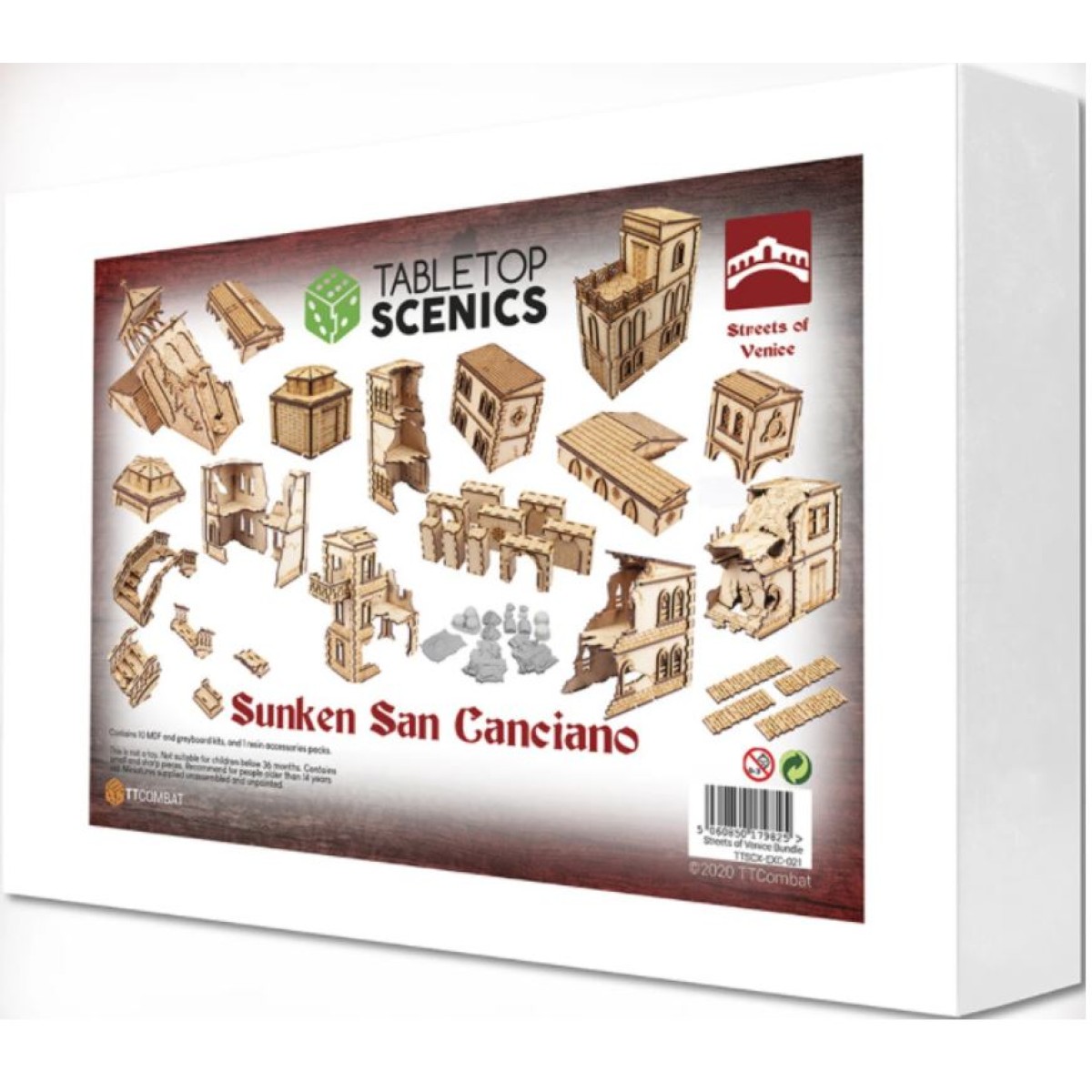Carnevale players are in for a treat with the Sunken San Canciano set! It has over a dozen different buildings, most in a state of ruin, disrepair, or completely sunken! Add to that some extra walls and ruined bridges, and you have a set that will transform your games. The sunken kits aren't even widely available yet – bonus!