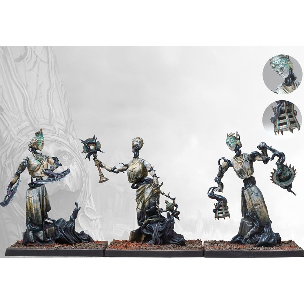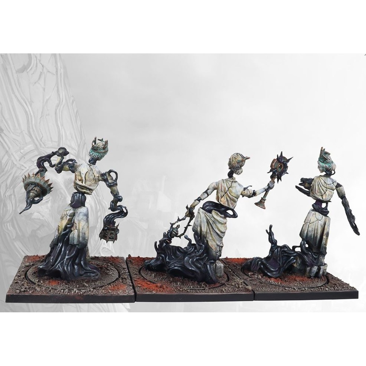 Deep within the great temples of Capitas, one could find the Telestria, great halls in which people were initiated into the mysteries of Hazlia’s cult. Ringing these richly appointed halls, dozens upon dozens of Kanephors stood guard, bearing the bounty and gifts their lord would shower unto Hazlia’s new initiates. In a dark parody of their former role, these terrifying animate constructs can be unleashed upon the battlefield to deliver their god’s last gift: Death.