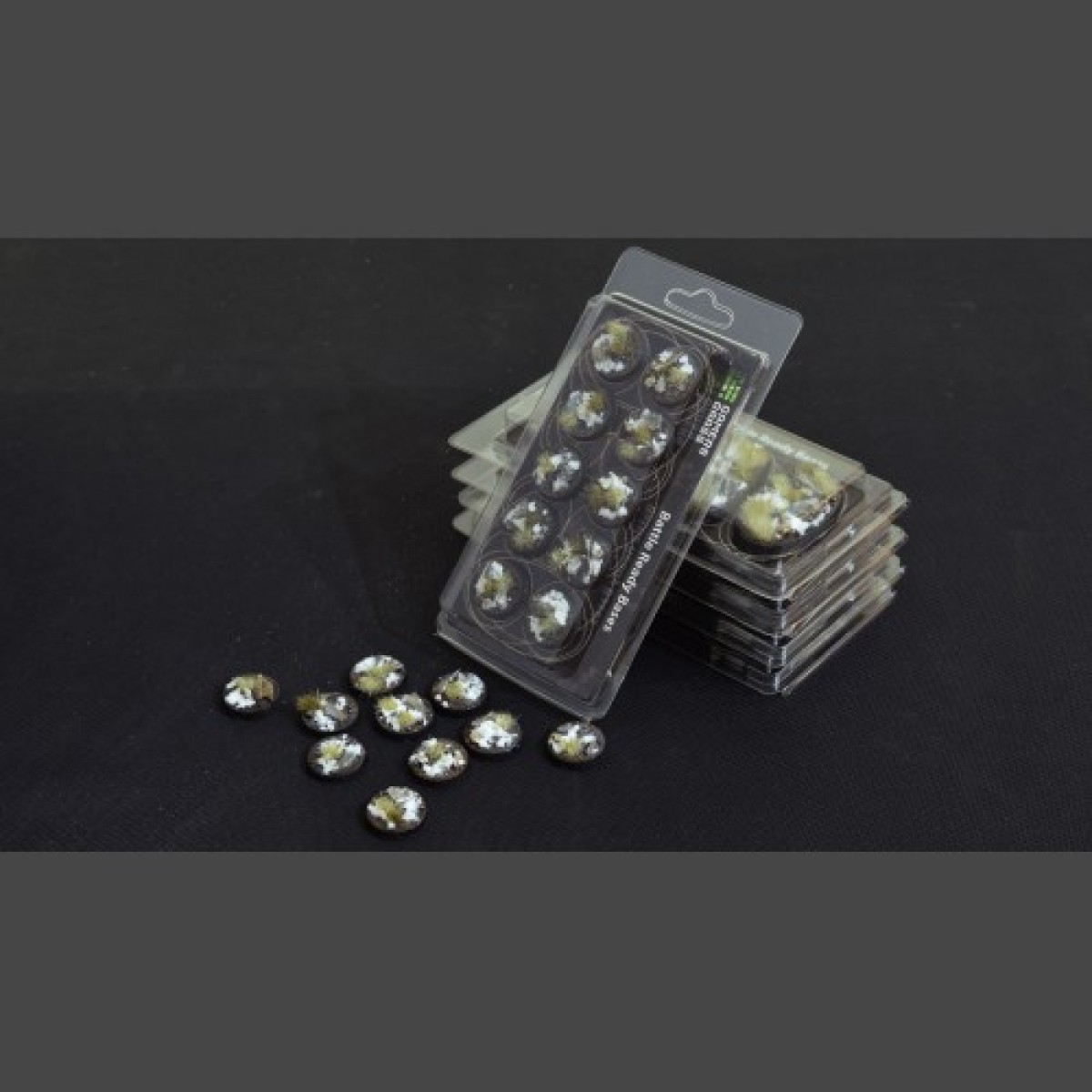 This pack contains 10 x round Battle Ready Bases - 25mm wide - in a winter theme.