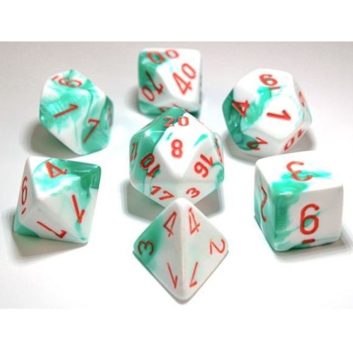 Chessex RPG DICE - Gemini Polyhedral Mint Green-White/orange 7-Die Set