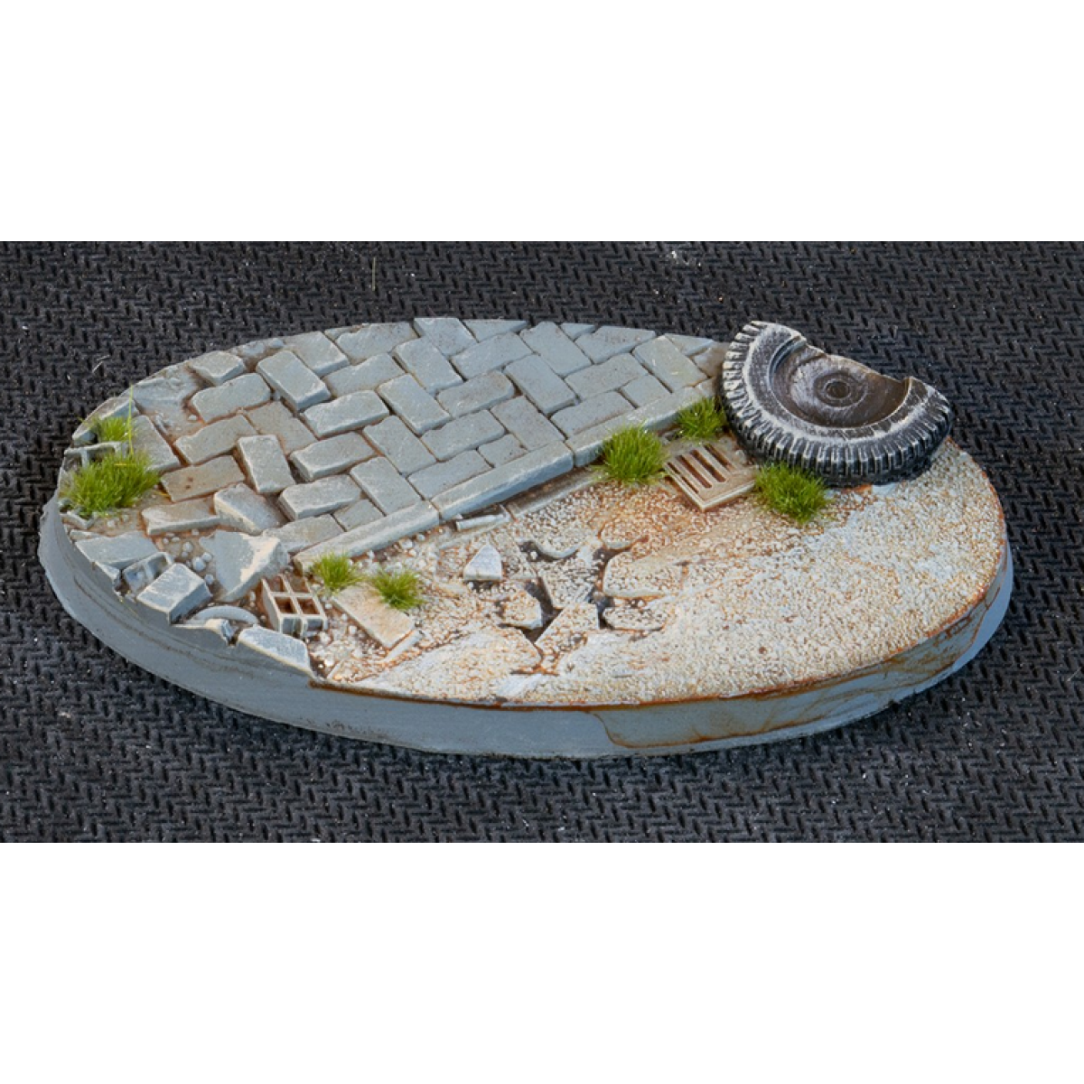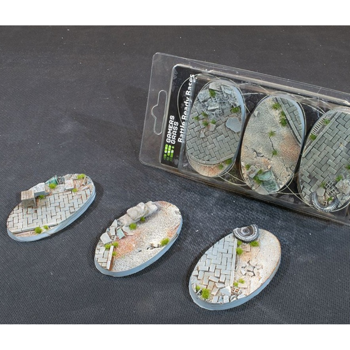 This pack contains 3 oval Battle Ready Bases 75mm wide in an urban warfare theme.