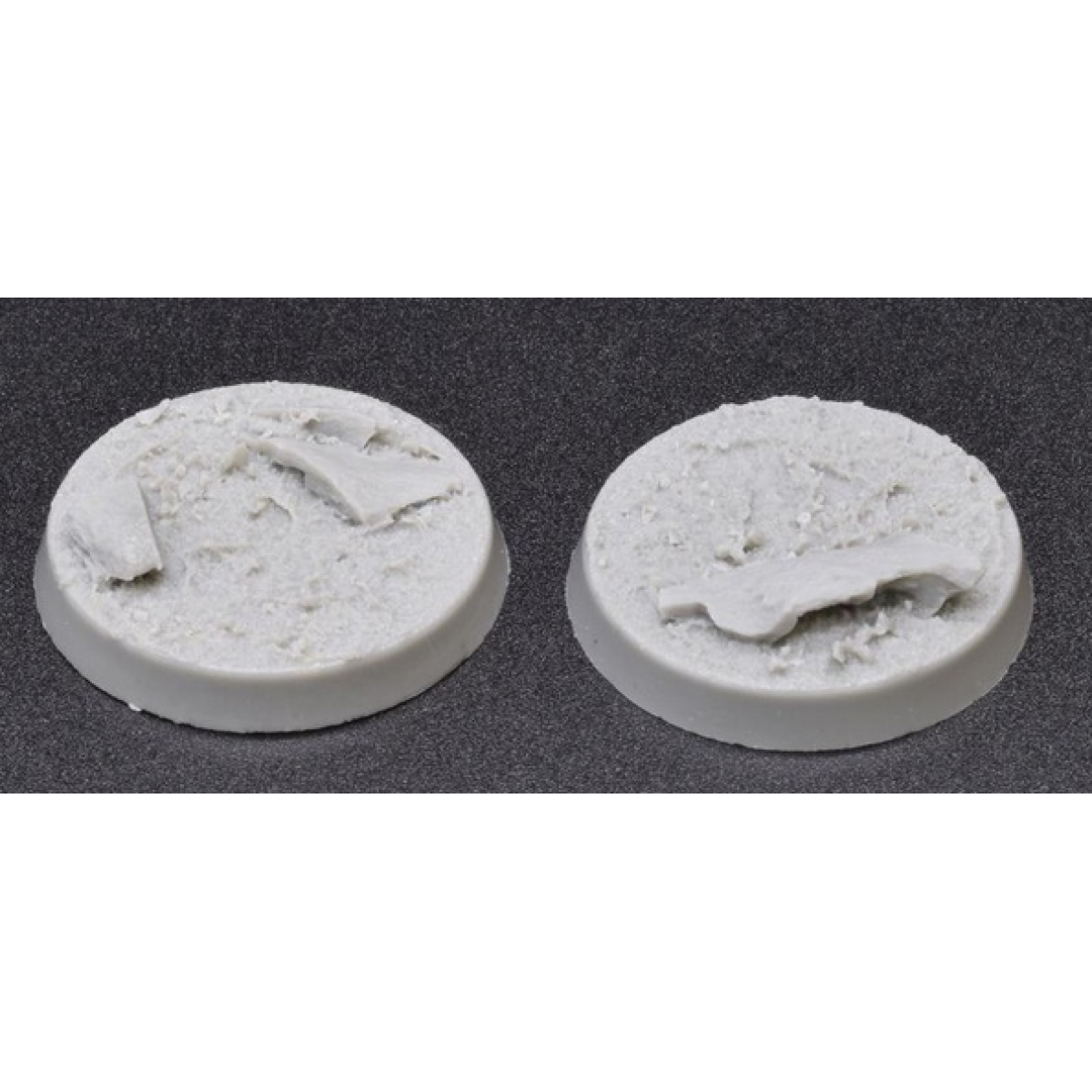 This pack contains 10 round resin bases 32mm wide in a rocky fields theme.