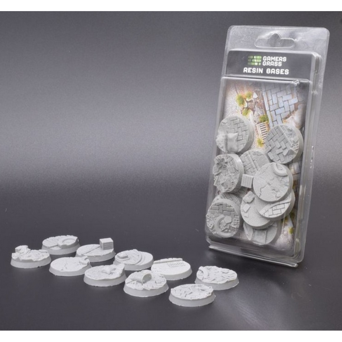 This pack contains 10 round resin base 32mm wide in an urban warfare theme.