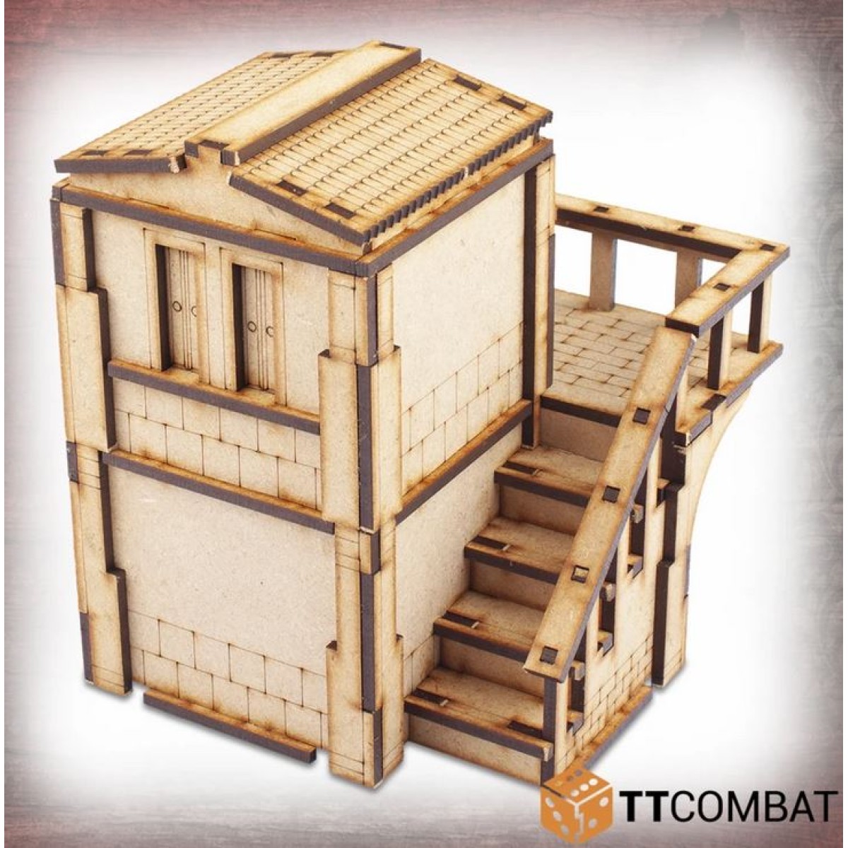 The Modular Veilletta Balcone Zaira gives a whole new level to your gaming space! We've seen rooftop skirmishes and frantic canal drownings. Now get ready for top of the staircase duels! The balcony here is a single storey, which on its own is fairly normal, but when combined with other kits gives an easy way to access the raised areas of your board. You can even put two together to make an archway!