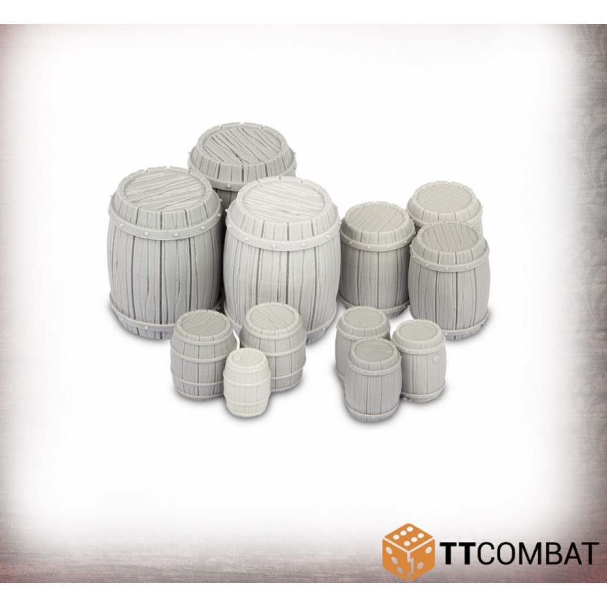 This pack contains 12 resin barrels, perfect for games of Carnevale, or any other 28-32mm scale skirmish game really! The pack comes with 3 large barrels, 3 medium barrels, and 6 small barrels.