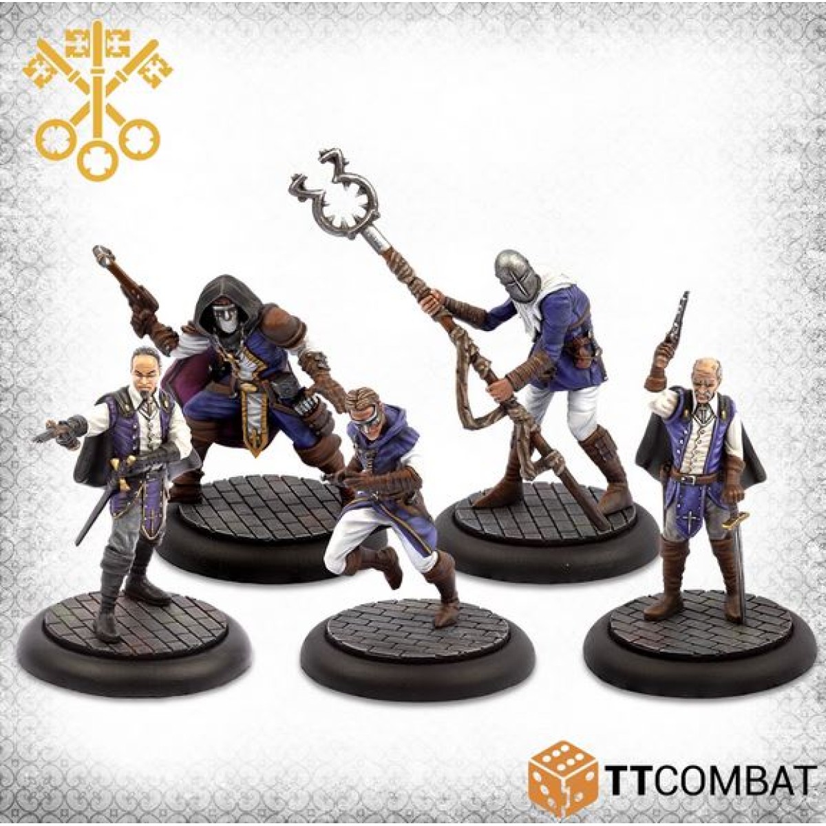 This box gives loads of flexibility to a Vatican gang. Two Inquisition Commissioners will keep your forces in line, while the Stalker armed with a handbow provides sneaky ranged support. The Inquisitorial Spy is fast and flexible, giving re-rolls to your gang, and lastly the helmeted Witch Finder makes dealing with mages easier than ever before.