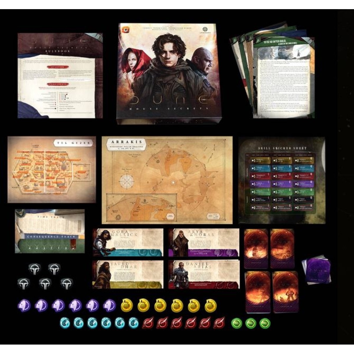 Dune: House Secrets is a cooperative story-driven game in which you join the resistance against House Harkonnen! Experiencing an original adventure inspired by the blockbuster film, you must complete a series of missions with limited time and resources. It's impossible to experience every encounter, and the story changes as you make hard decisions and sacrifices along the way. How will you uncover the secrets of Arrakis?