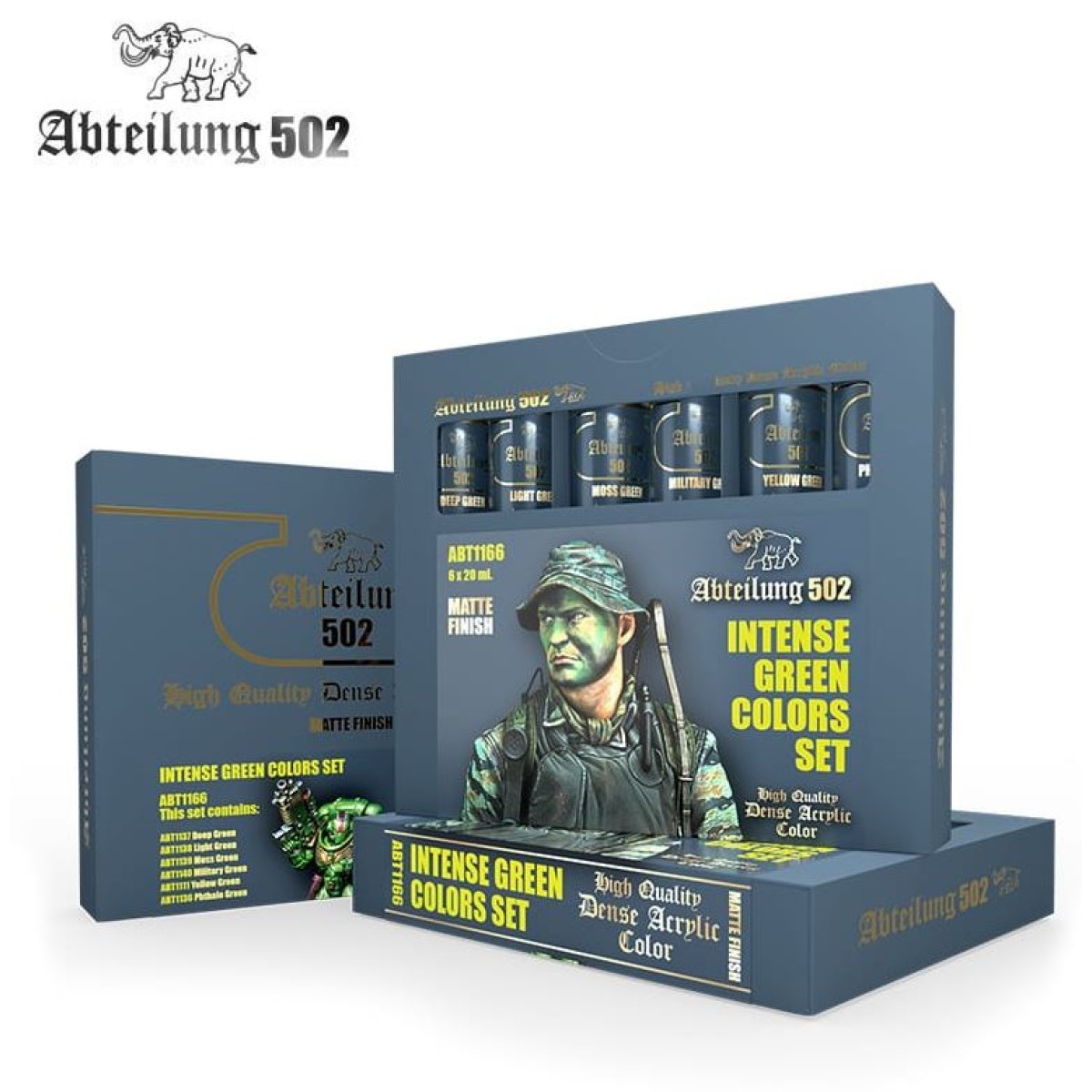 Green tones are the focus of this set. The combinations of the included colors allow to paint different military figures, fantastic figures or any other piece in which green tones are important to be made.
