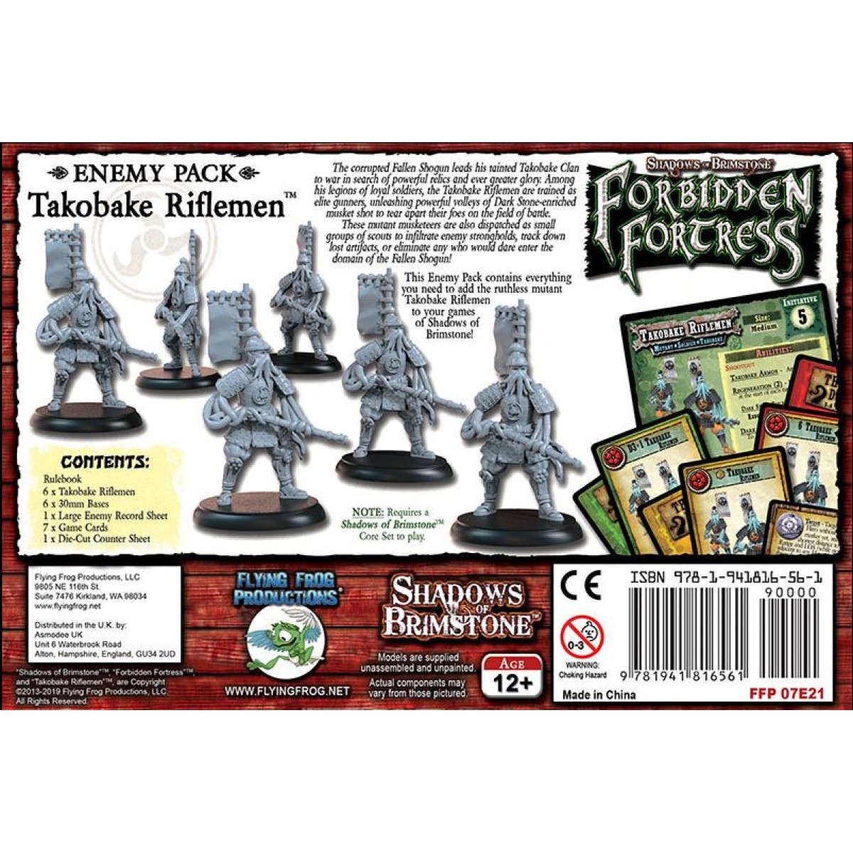 This Enemy Pack contains everything you need to add the ruthless mutant Takobake Riflemen to your games of Shadows of Brimstone! There are 6 Takobake Riflemen models, as well as the large Enemy Record Sheet for them, die-cut counters, and all of the Threat Cards needed to add them to your games.