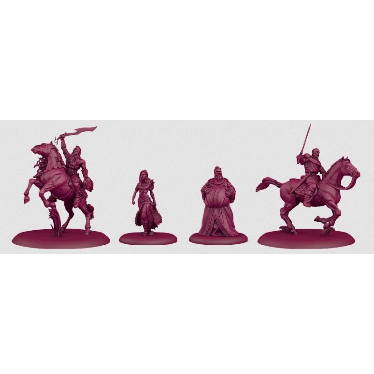 The Targaryen Starter Set for the A Song of Ice and Fire: Tabletop Miniatures Game provides players a new faction to use in the pursuit of the Iron Throne. It comes with everything a player needs to get started right away, including rulebook, dice, measuring sticks, the Targaryen Tactics Deck, tokens, counters, and more. The faction primarily consists of cavalry units, including Dothraki Screamers, Outriders, and Veterans. There are also special characters like Khal Drogo, Daenerys Targaryen, and Jorah Mormont players can use to augment their armies. This highly-mobile, tough force will bring new challenges and new opportunities to the battlefield.