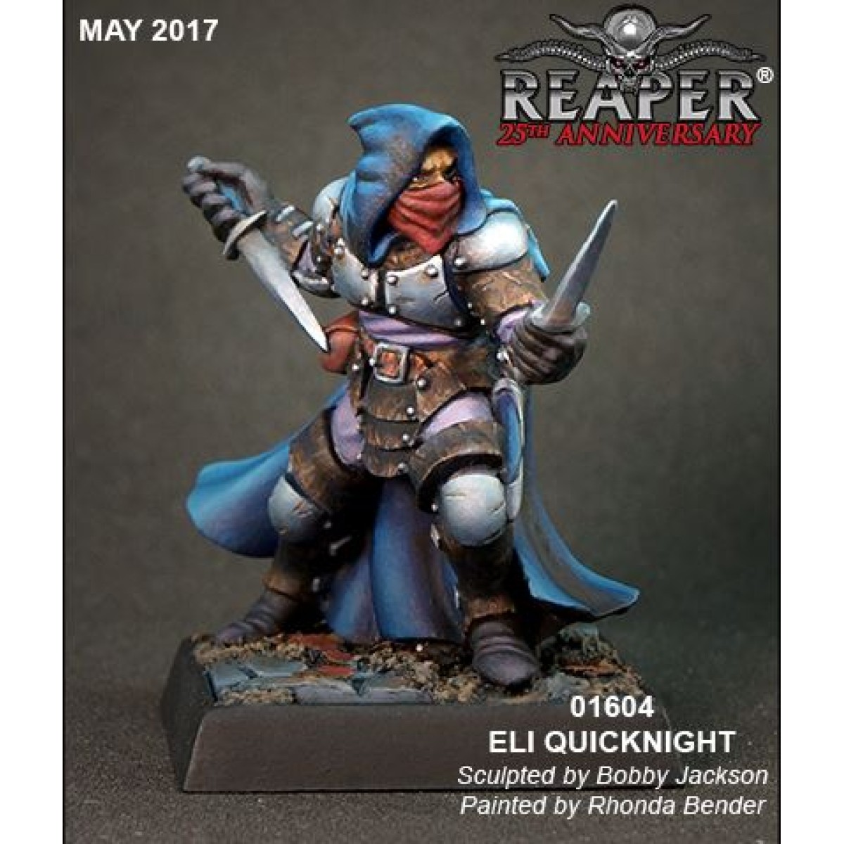 From out of the shadows, we have the next 25th Anniversary Miniature! Our May miniature is the ruthless, stealthy assassin, Eli Quicknight, sculpted by Bobby Jackson.