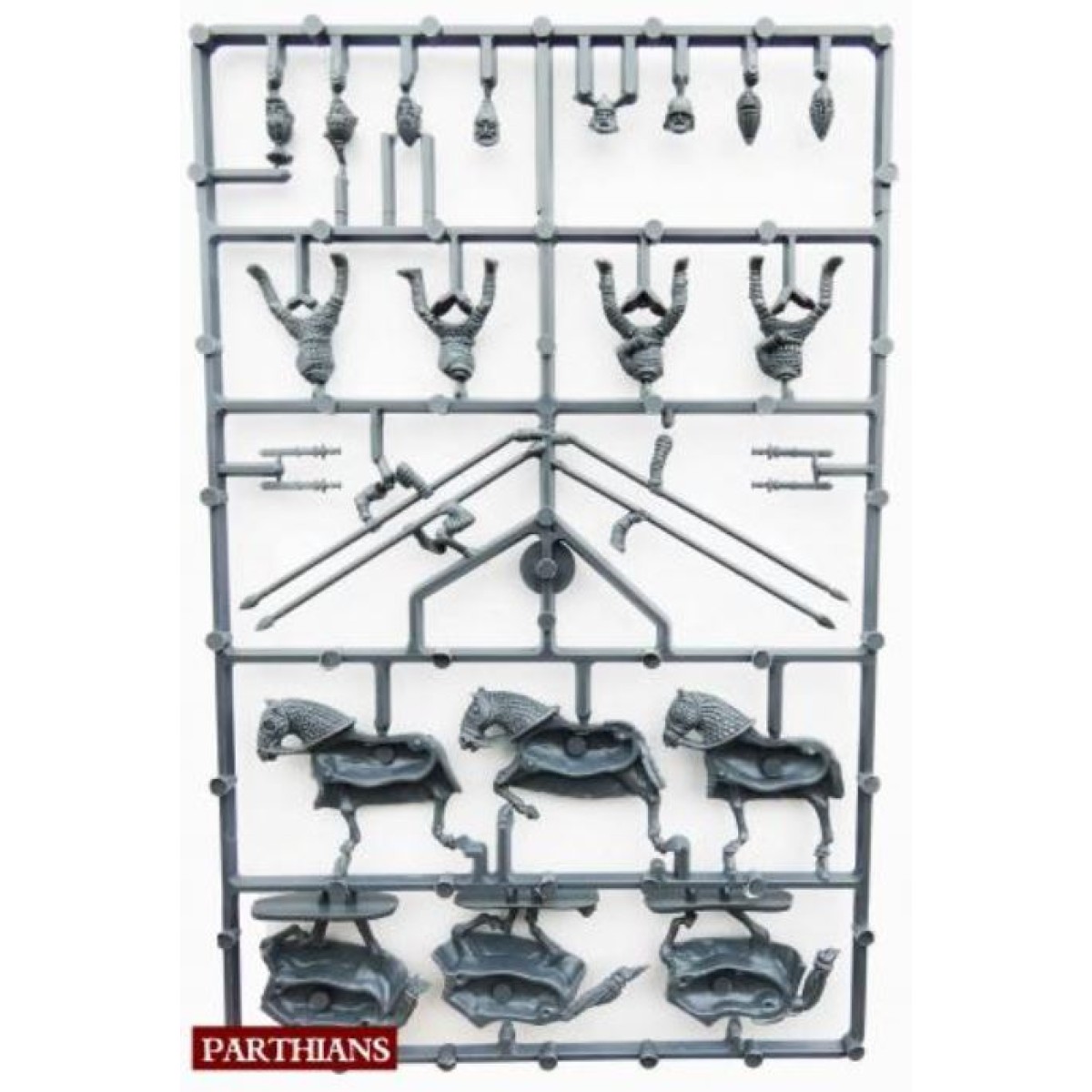 Inside you will find parts to assemble 12 Parthian Cataphracts, making up to 6 bases of cavalry in the Swordpoint game system. These figures represent the famous heavily armoured Cataphracts of the Parthian Empire. They can also be used to represent similar troops fielded by the Armenian and Sassanid armies.