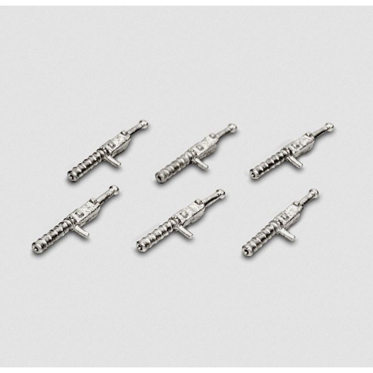 6 unpainted lead free pewter swivel guns.