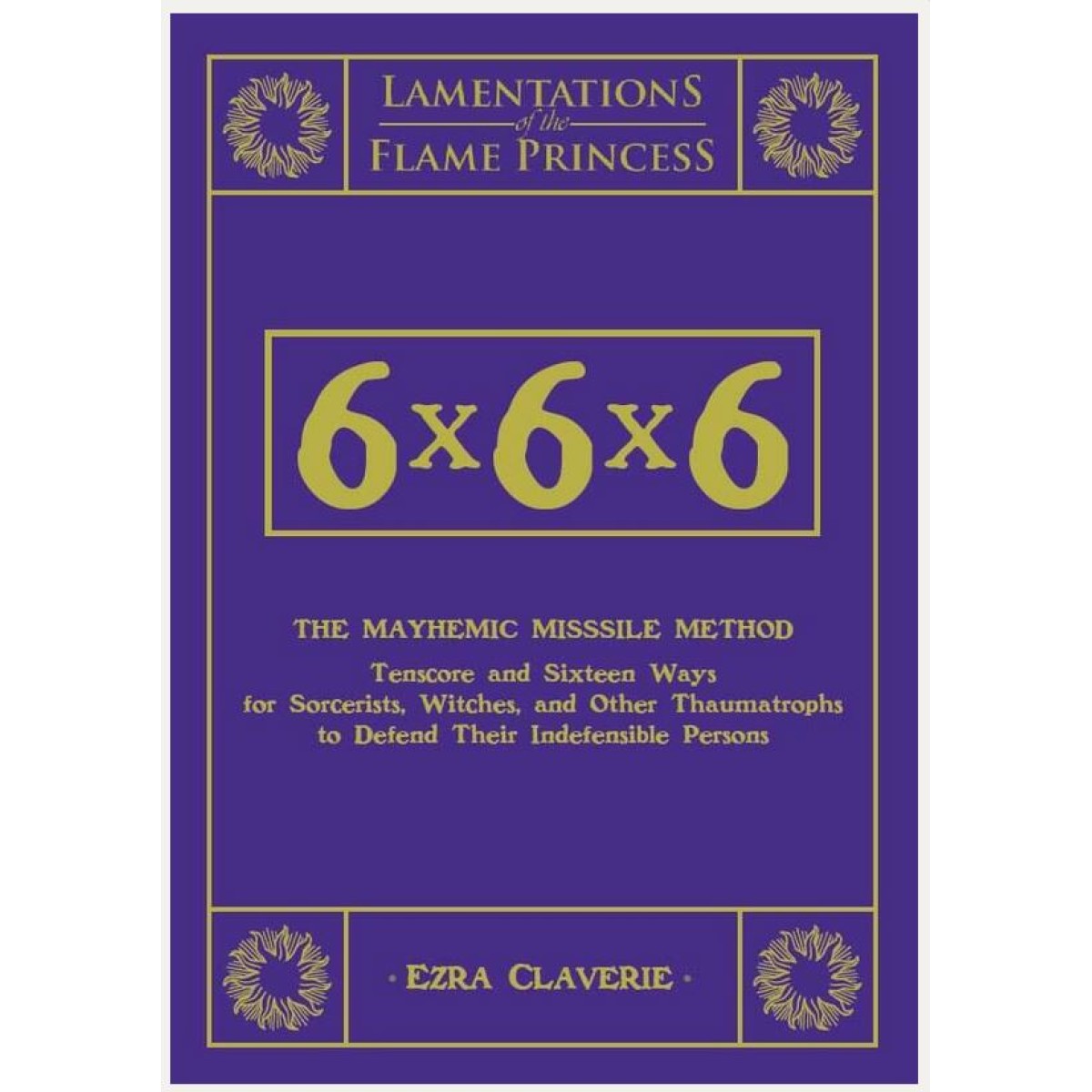 6x6x6: The Mayhemic Misssile Method (Tenscore and Sixteen Ways for Sorcerists, Witches, and Other Thaumatrophs to Defend Their Indefensible Persons) is a magic supplement for use with Lamentations of the Flame Princess and all other traditional sword-and-sorcery tabletop role-playing games