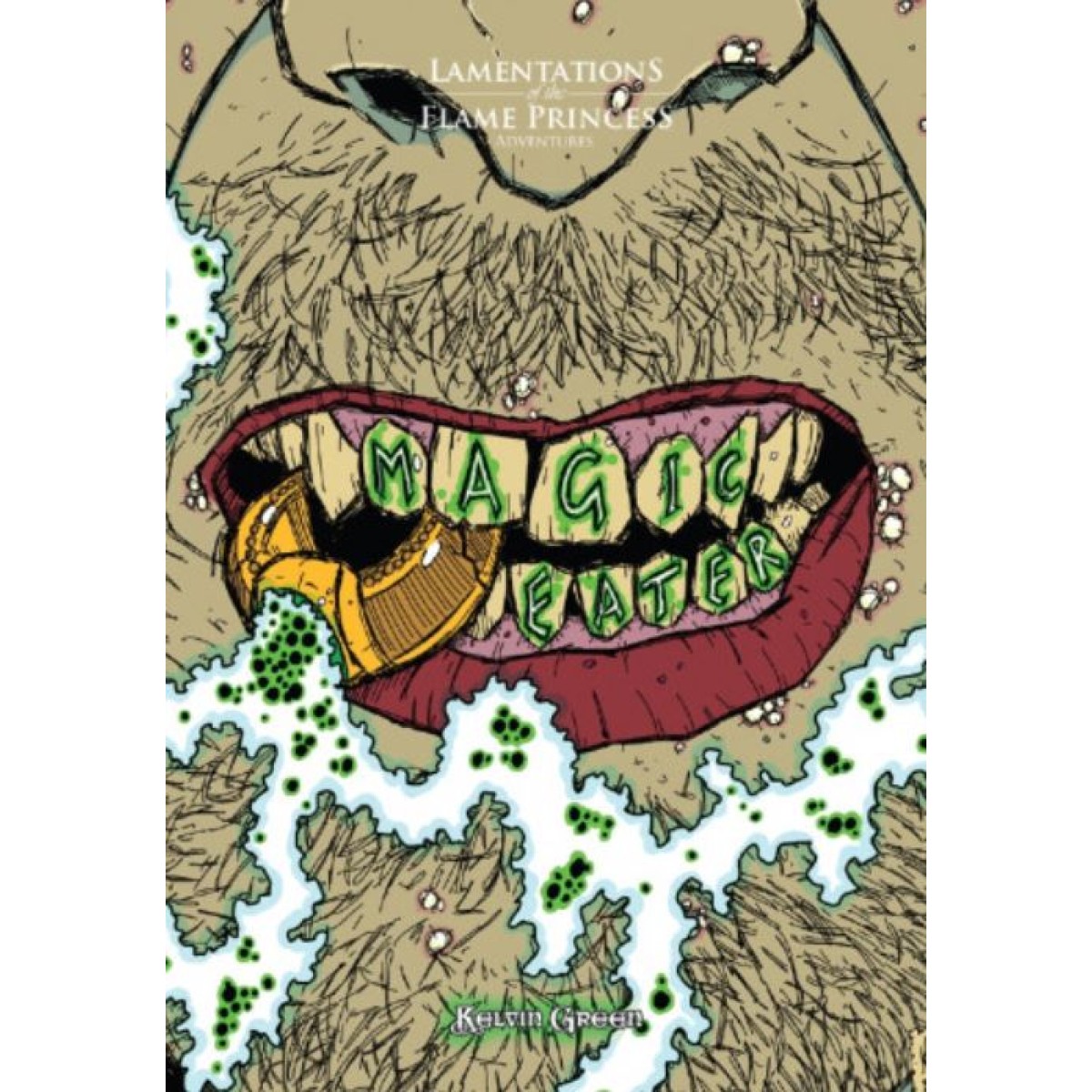 MAGIC EATER is an adventure for Lamentations of The Flame Princess Weird Fantasy Roleplaying and other traditional roleplaying games. The adventure favours exploration and stealth, which means Specialists will shine. If things go wrong, there is a 5 Hit Dice boss monster with about 40 henchmen and a literal smörgåsbord of special abilities, so bear that in mind or prepare to provide your players with a lot of cannon fodder hirelings.