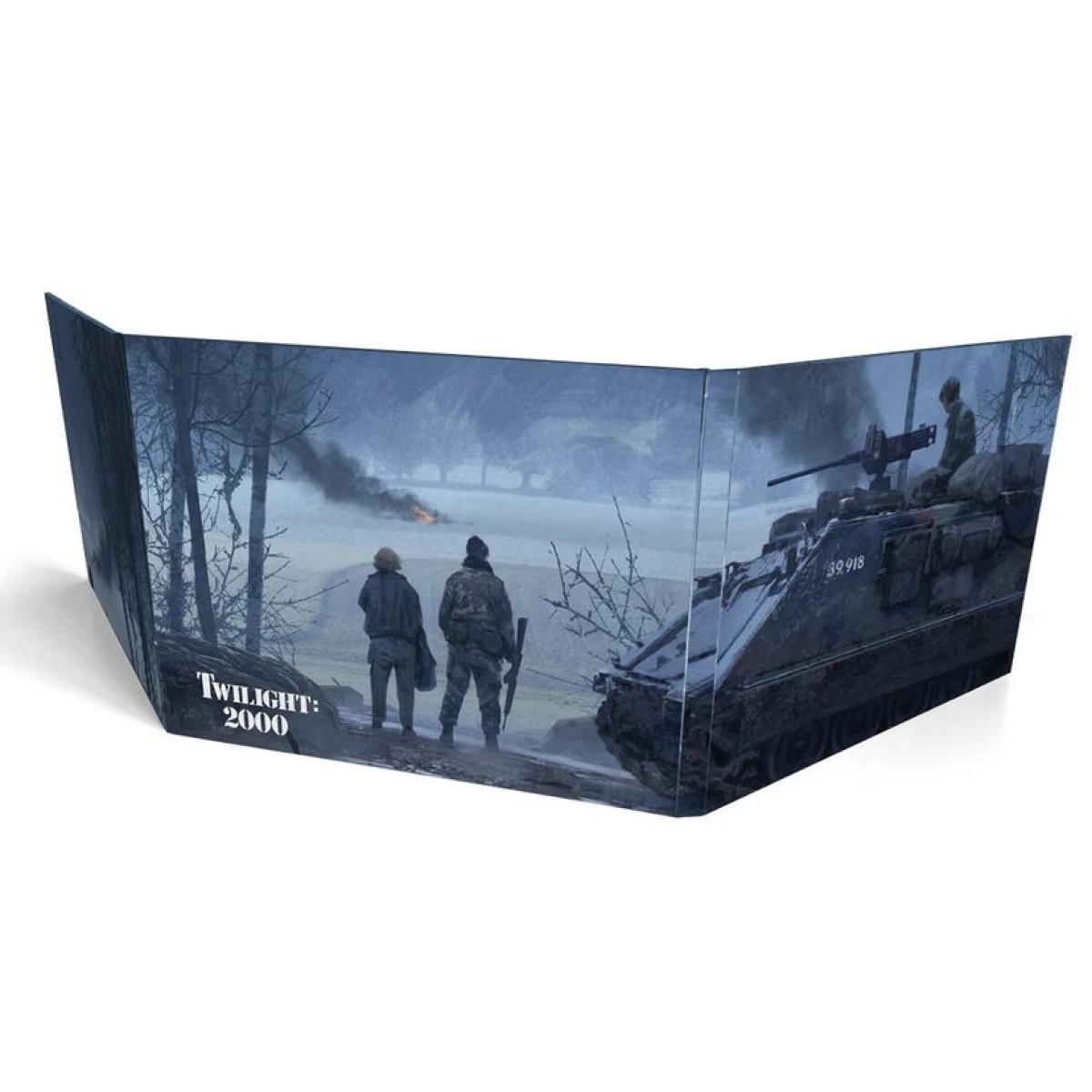 A deluxe Referee’s screen in landscape format for the fourth edition of the Twilight: 2000 roleplaying game.