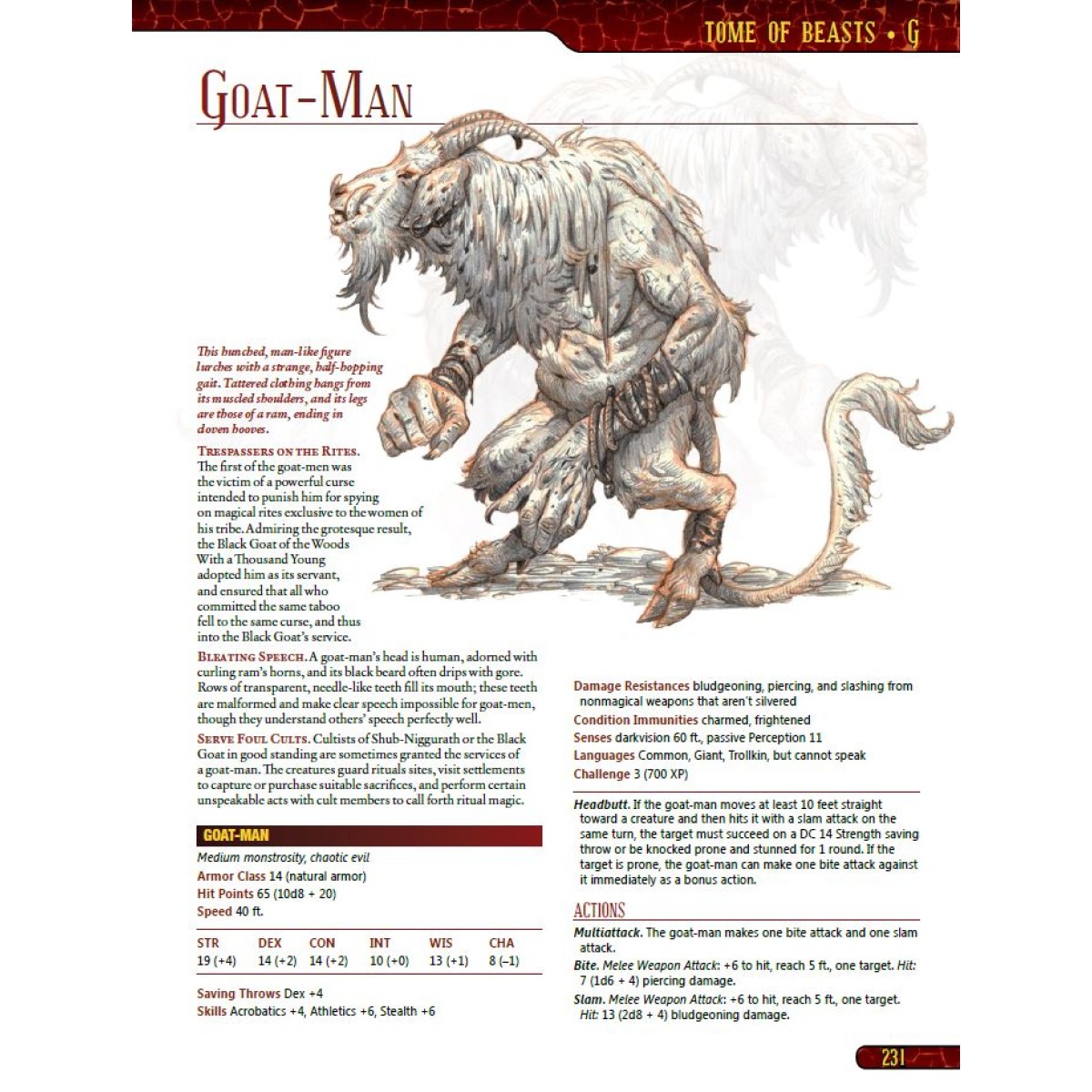 Whether you need dungeon vermin or a world-shaking personification of evil, the Tome of Beasts has it. Here are more than 400 new foes for your 5th Edition game-everything from tiny drakes and peculiar spiders, to demon lords and ancient dragons.
