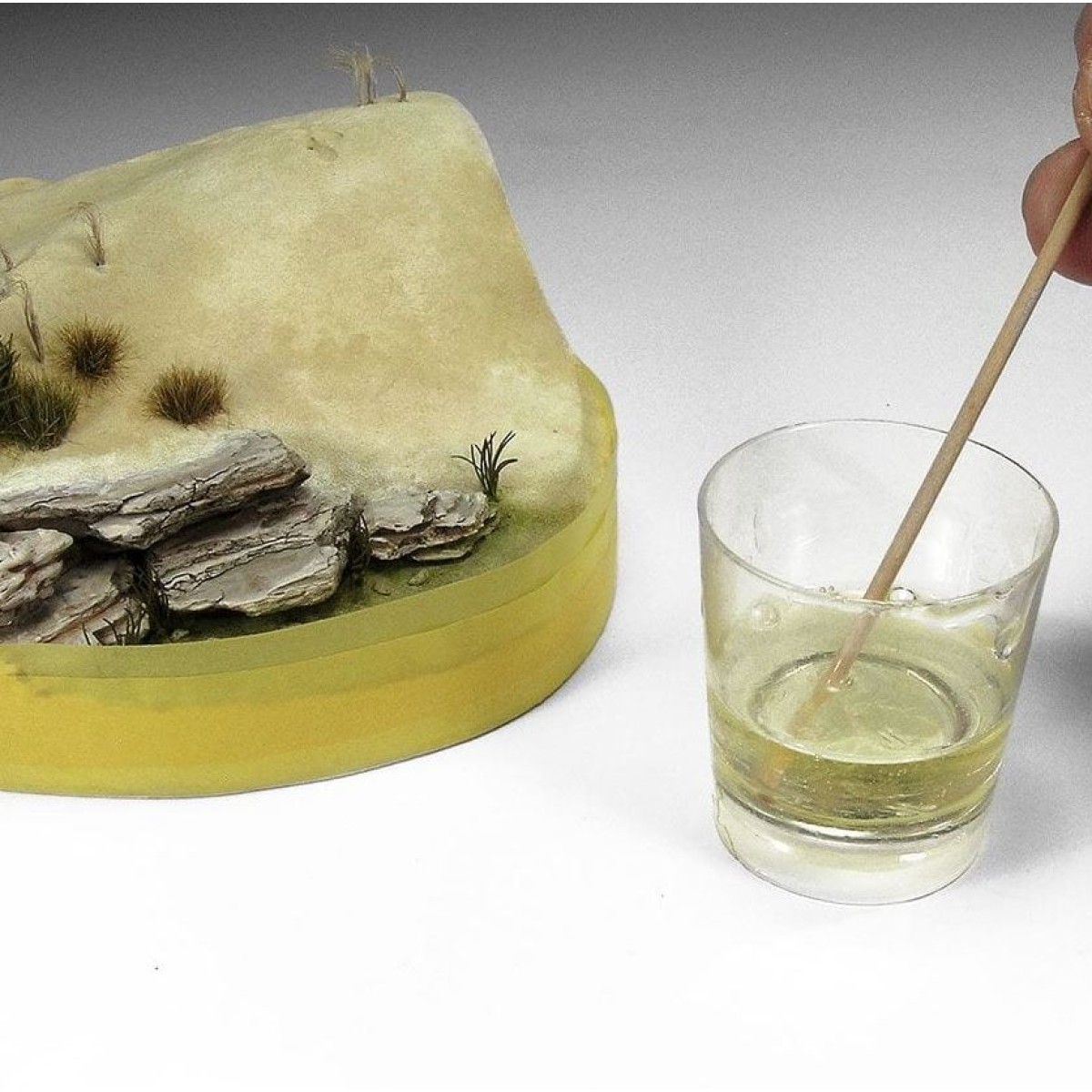 A low odor, 2 part component epoxy resin that simulates crystal clear water for miniature, dioramas, vignettes, etc and other hobbies.
