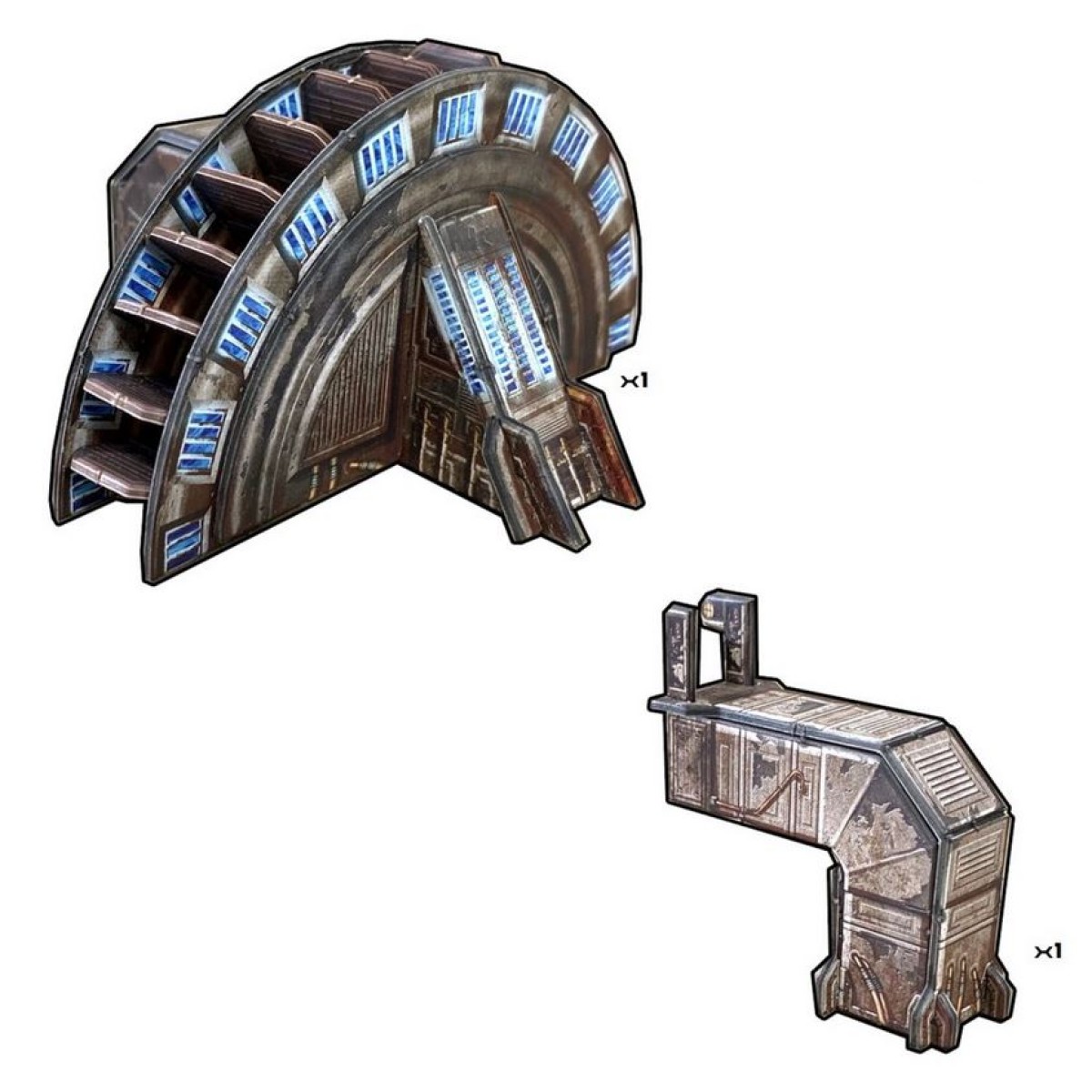This pack upgrades your gaming table with a large industrial turbine. It can be assembled in two ways; red rust or tarnished steel, and makes an excellent centrepiece to a factory complex or boiler room. The set is compatible with any of the Battle Systems Sci-fi or Urban Core Sets.