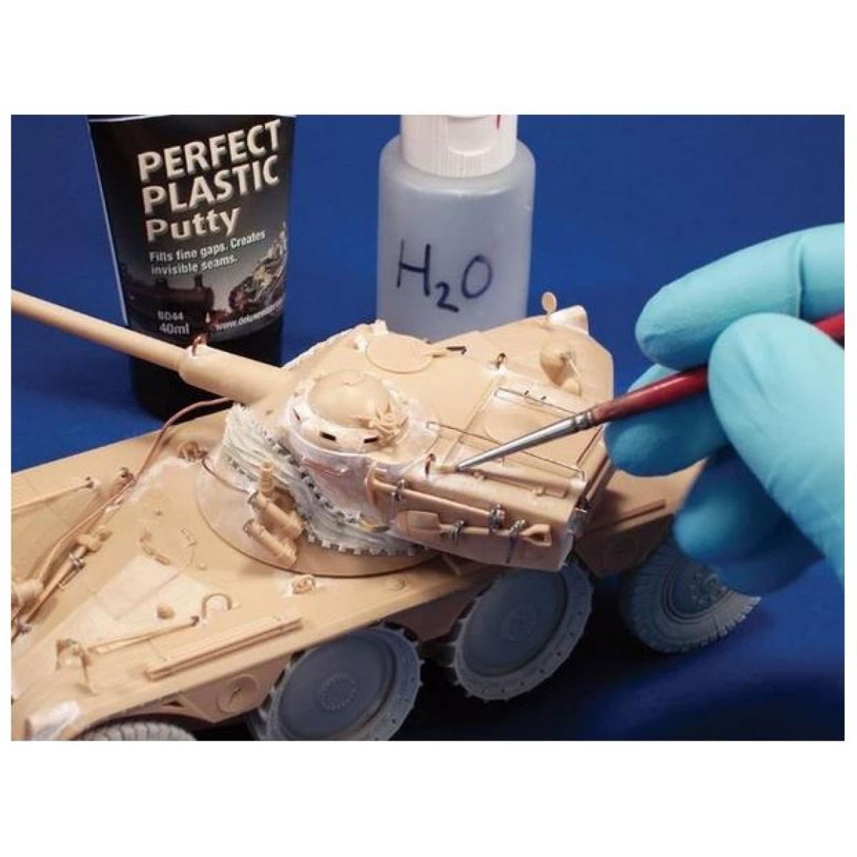 Perfect Plastic Putty is a one-part, fast-drying, superfine filler with good adhesion and sanding properties on plastic. Easily used, even in awkward areas with water clean up. Apply with small spatula, smooth and allow to dry.