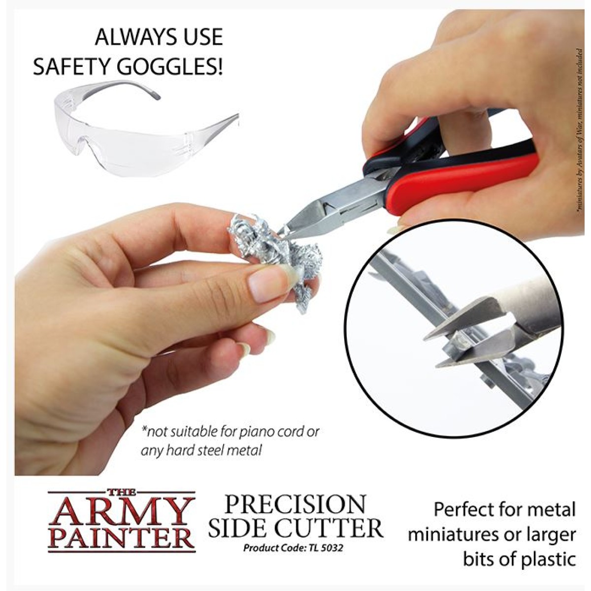 Made from stainless steel with a safety grip handle, the Precision Side Cutter is perfect for cutting metal miniatures or large bits of resin. Ideal for small cuts like arms, heads or weapons. Use to imitate cuts and battlefield damage on larger miniatures.